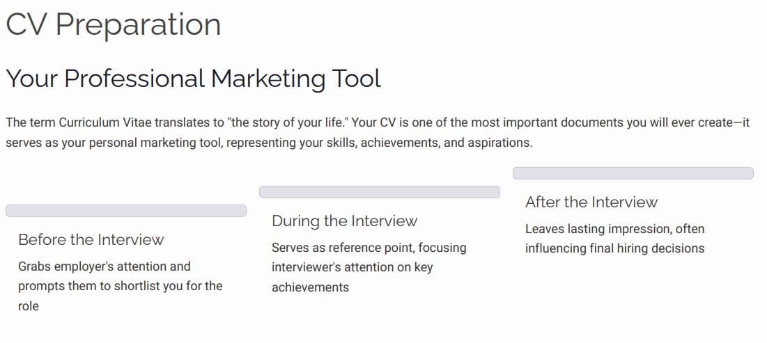 CV preparation and interview skills – craft professional, results-driven CVs and develop the confidence to succeed in interviews.